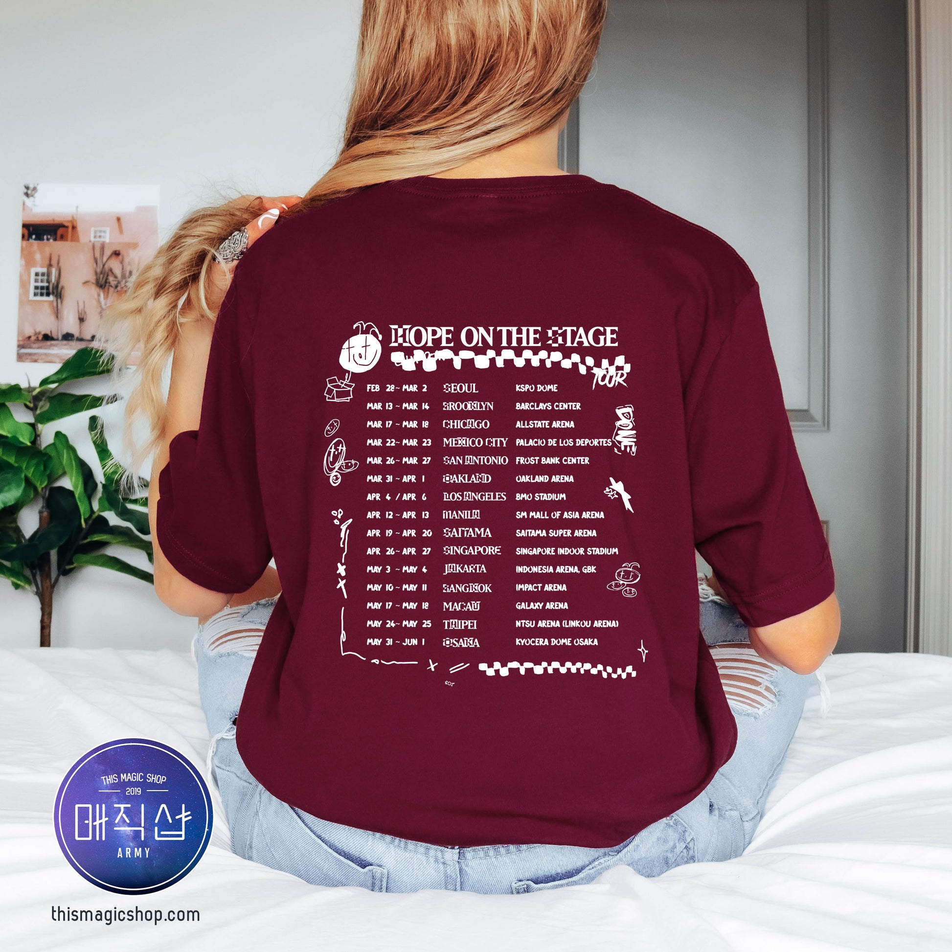 j-hope on the stage, tee shirt, Jack in the Box, tour, jhope, hoseok more arson, bts kpop army bomb tour merch concert outfit